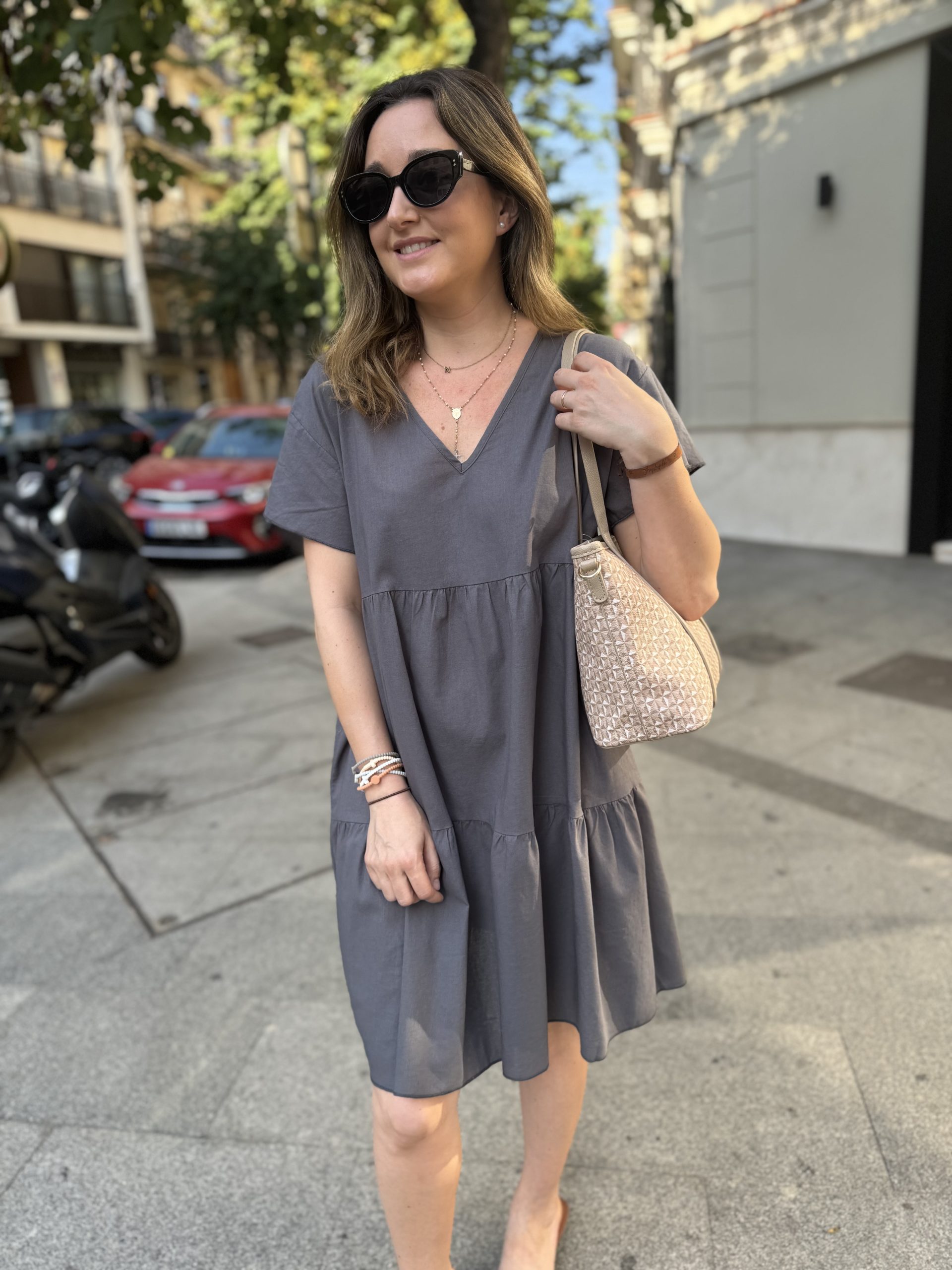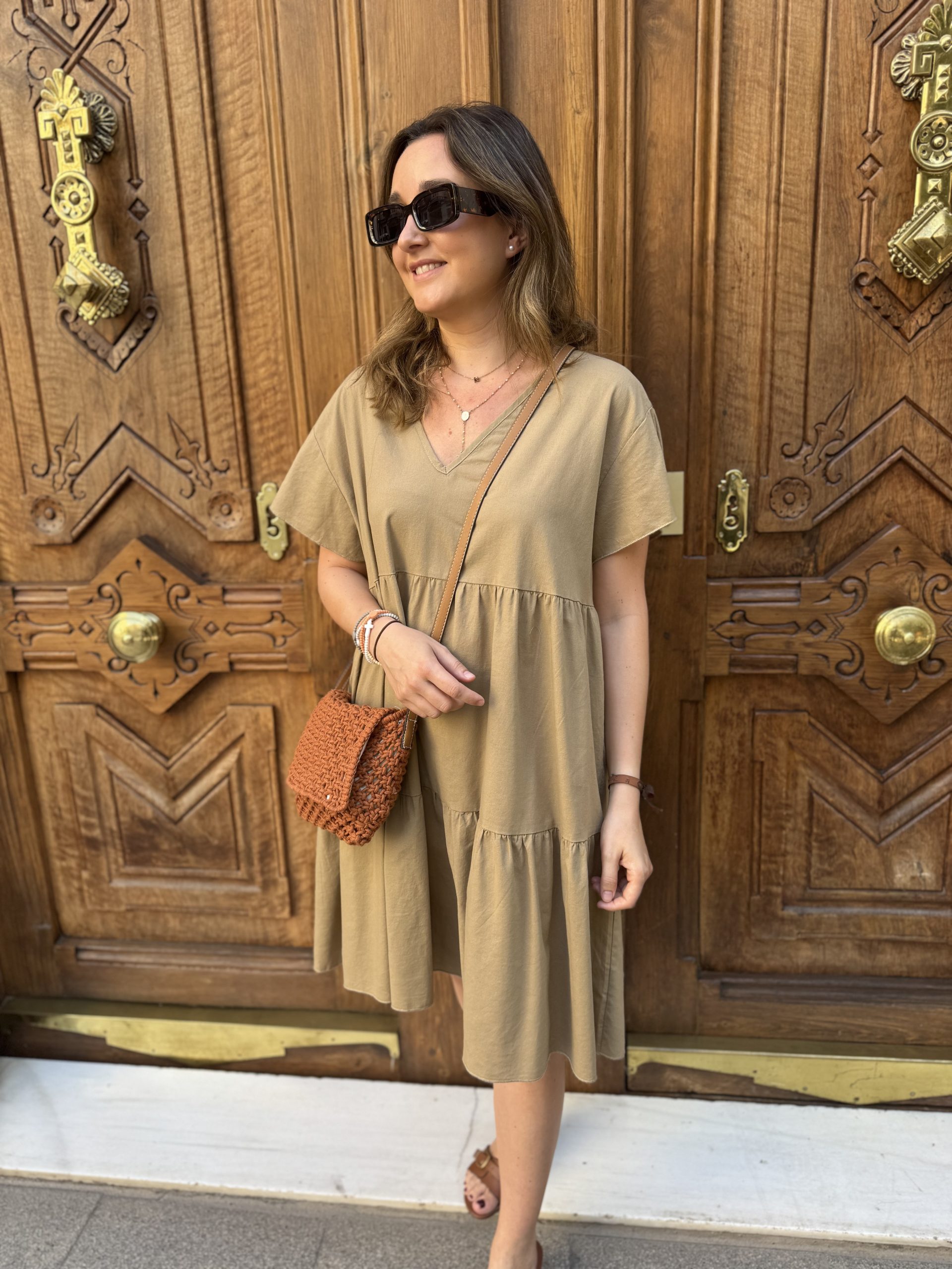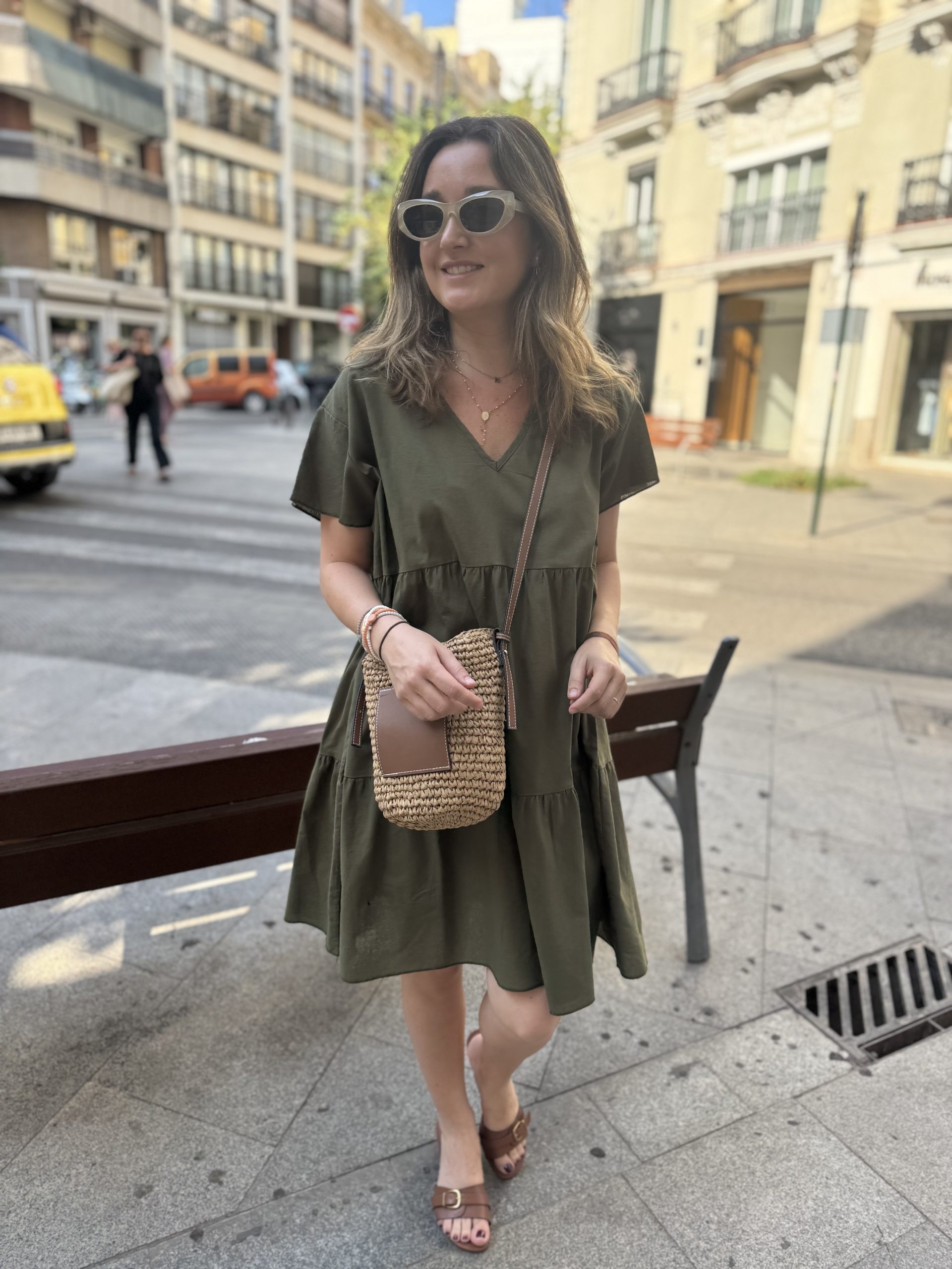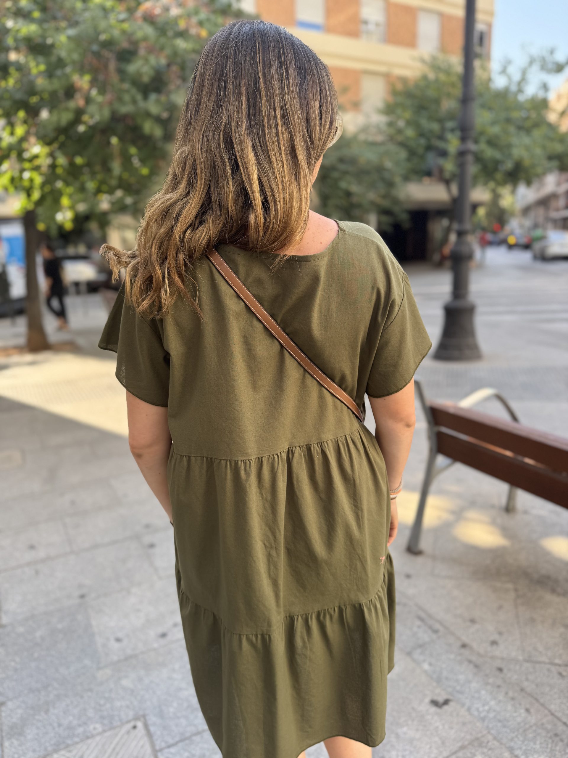 VESTIDO DE CUELLO PICO CON VOLANTE EN LA MANGA. TALLA ÚNICA. HASTA UNA TALLA 42 APROX.