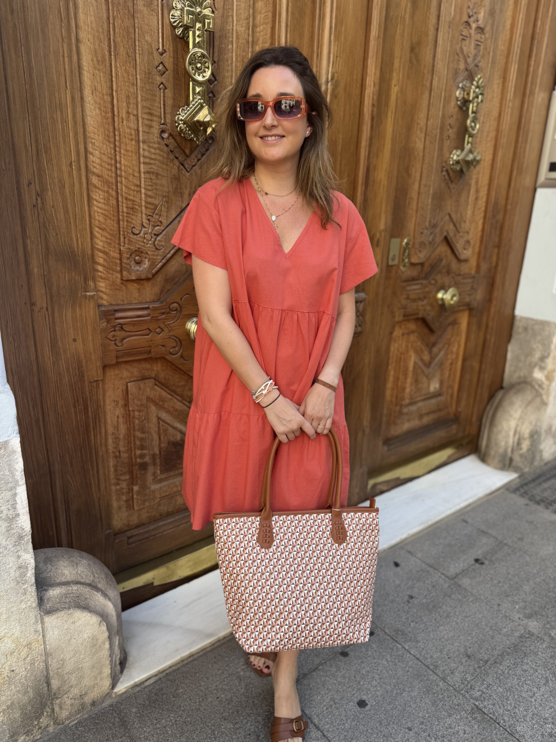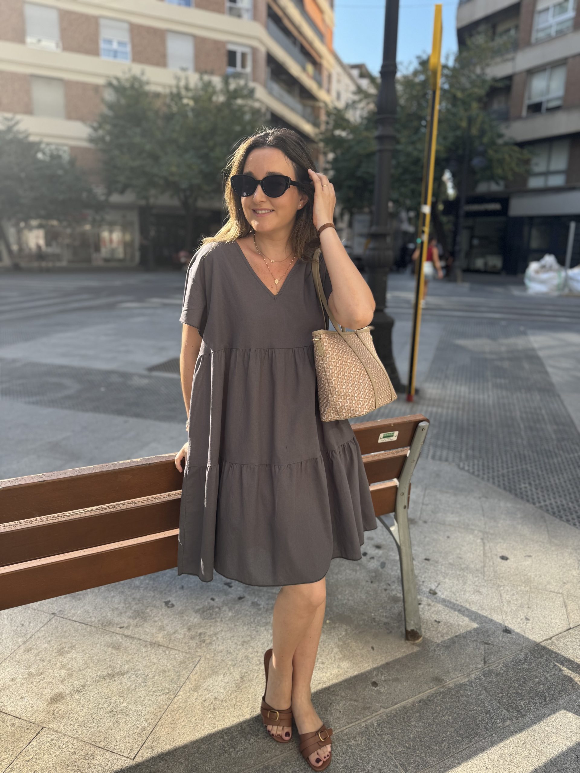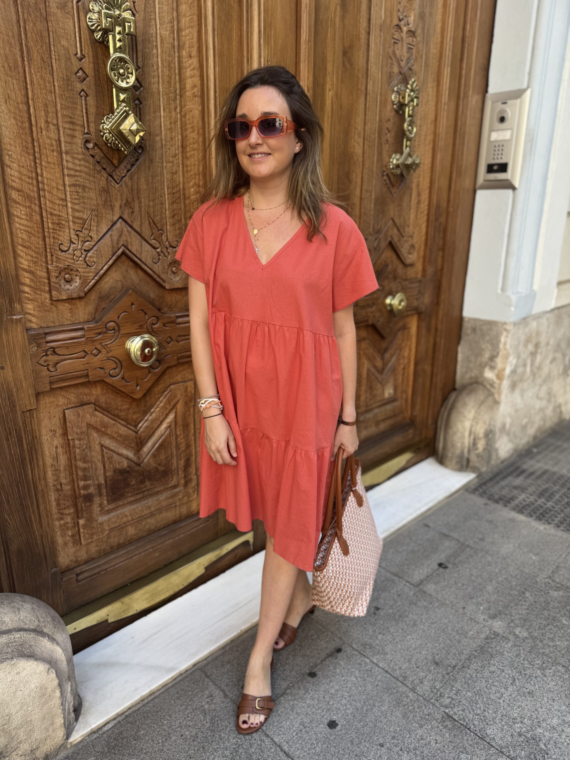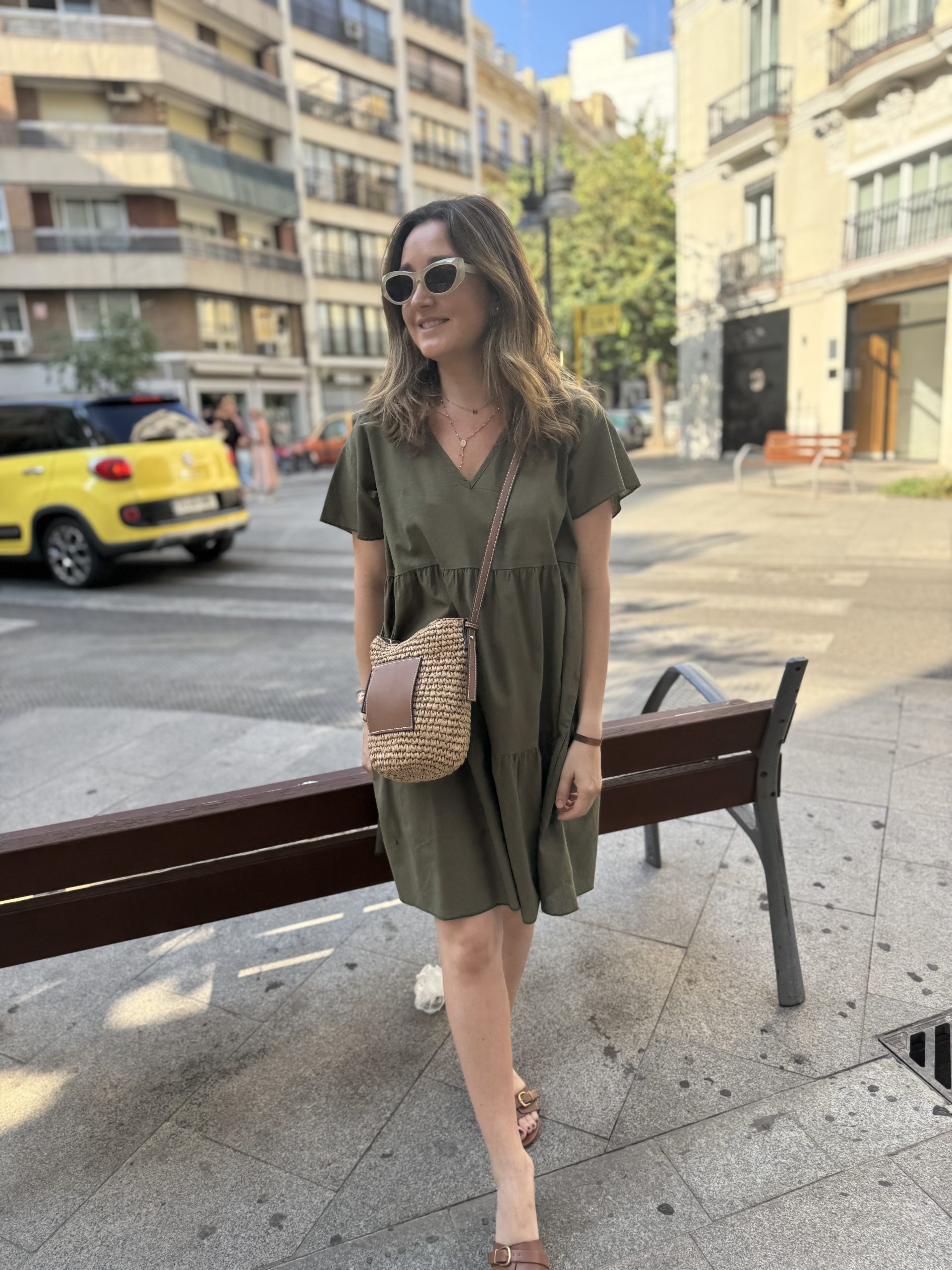 VESTIDO DE CUELLO PICO CON VOLANTE EN LA MANGA. TALLA ÚNICA. HASTA UNA TALLA 42 APROX.