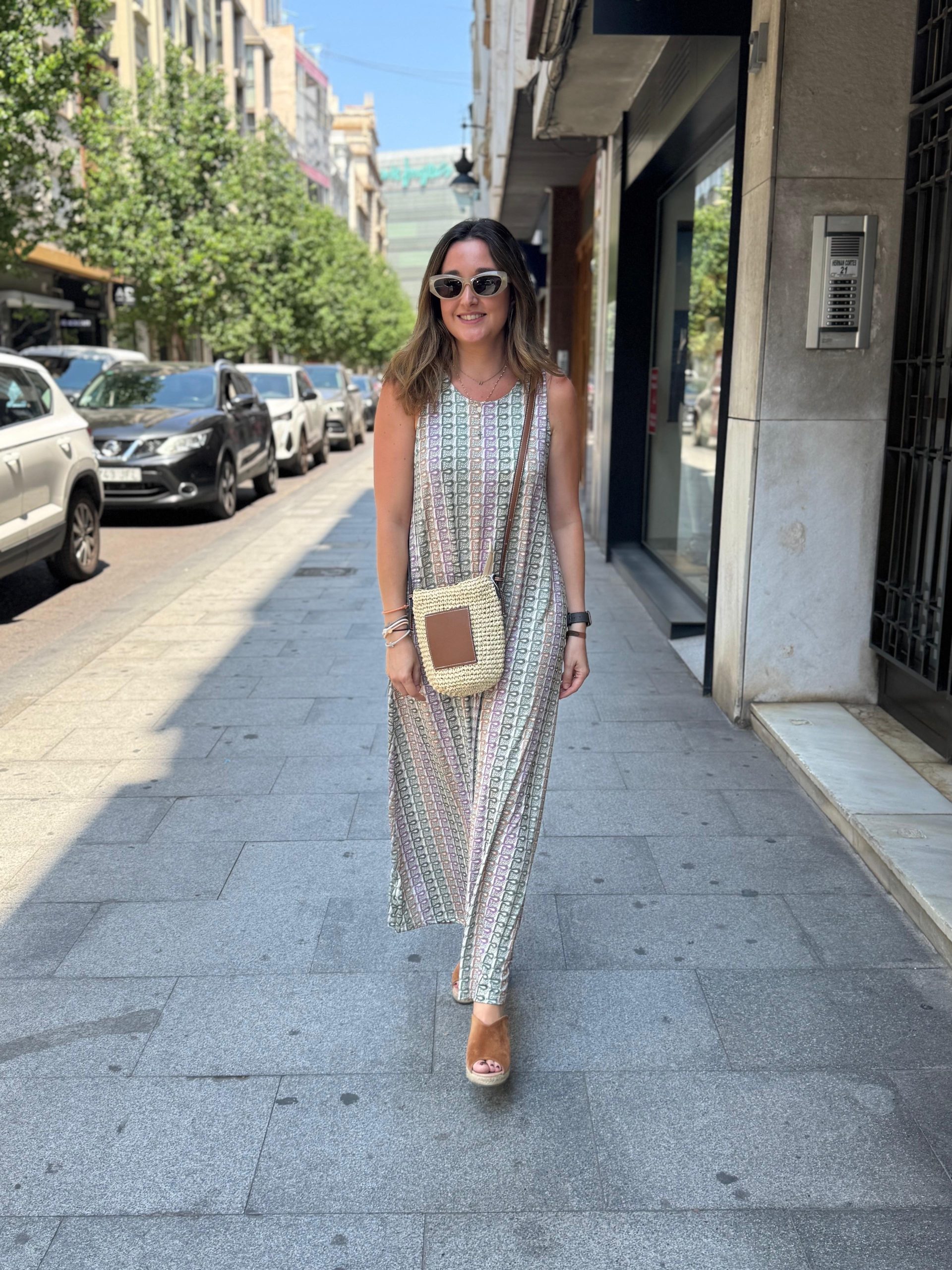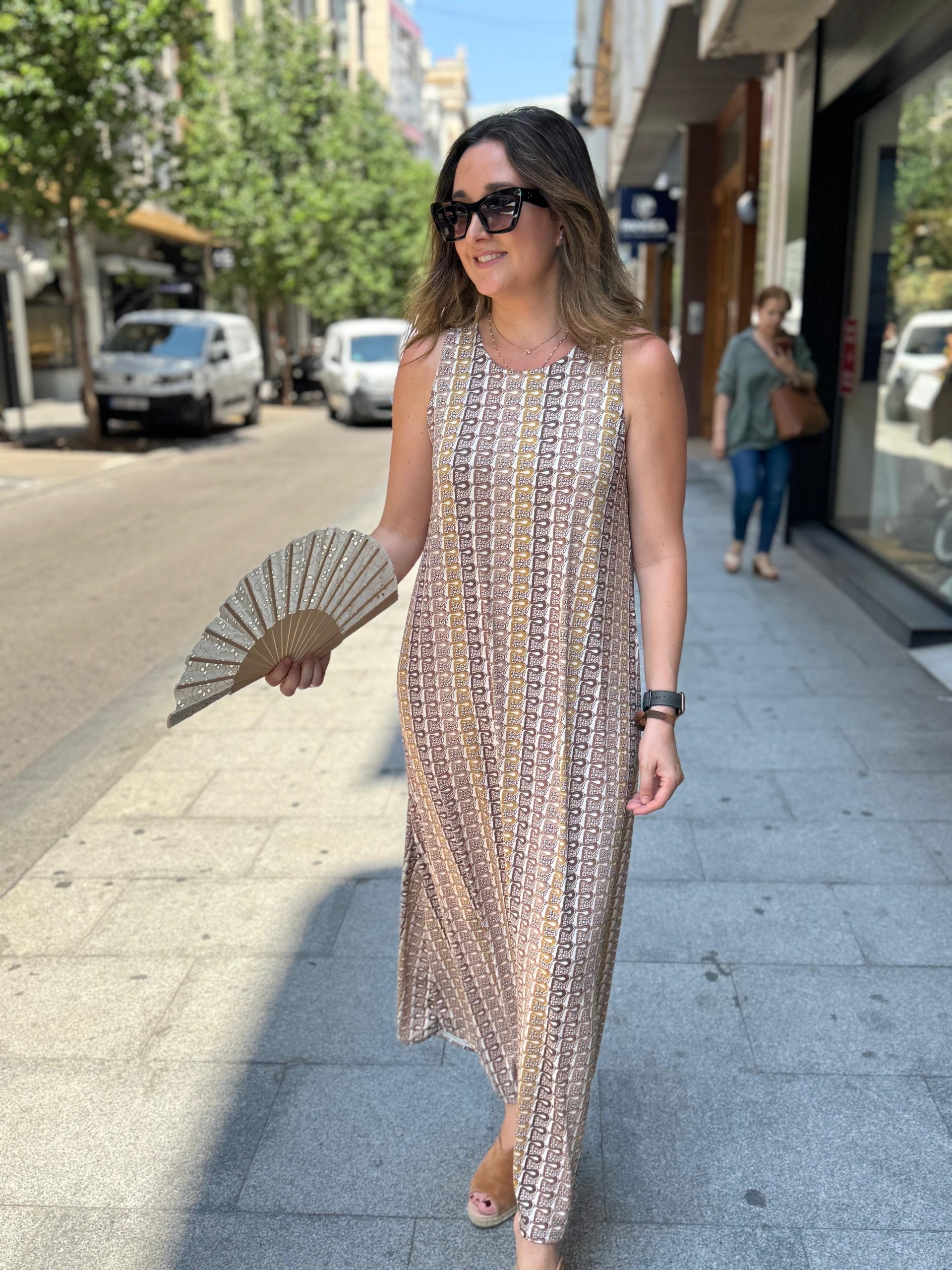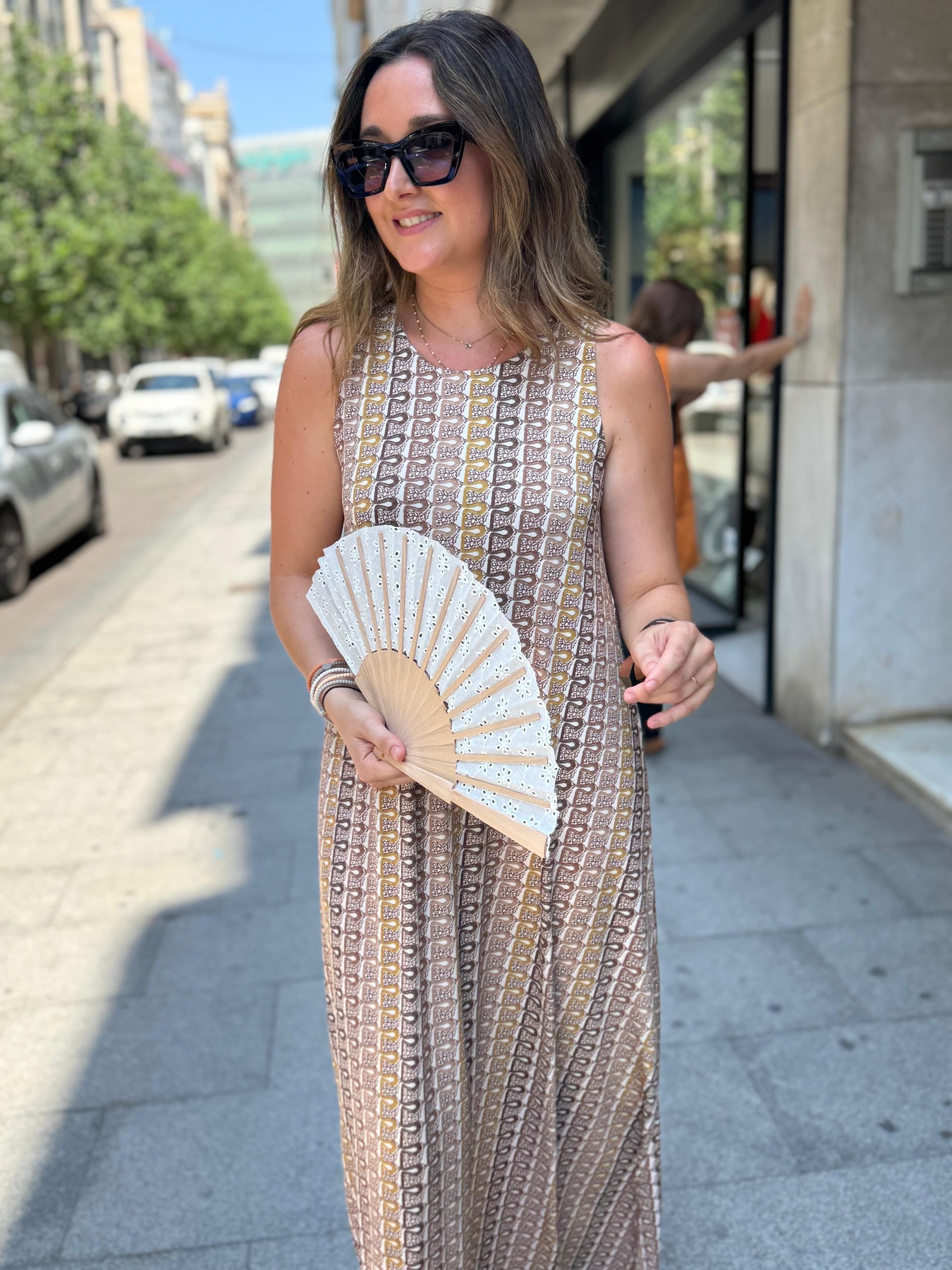 VESTIDO DE PUNTO DE SEDA ESTAMPADO. HASTA UNA TALLA 42 APROX. TALLA ÚNICA.