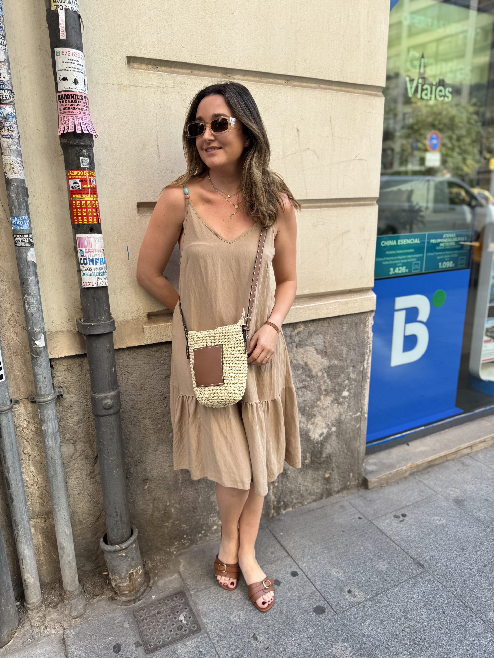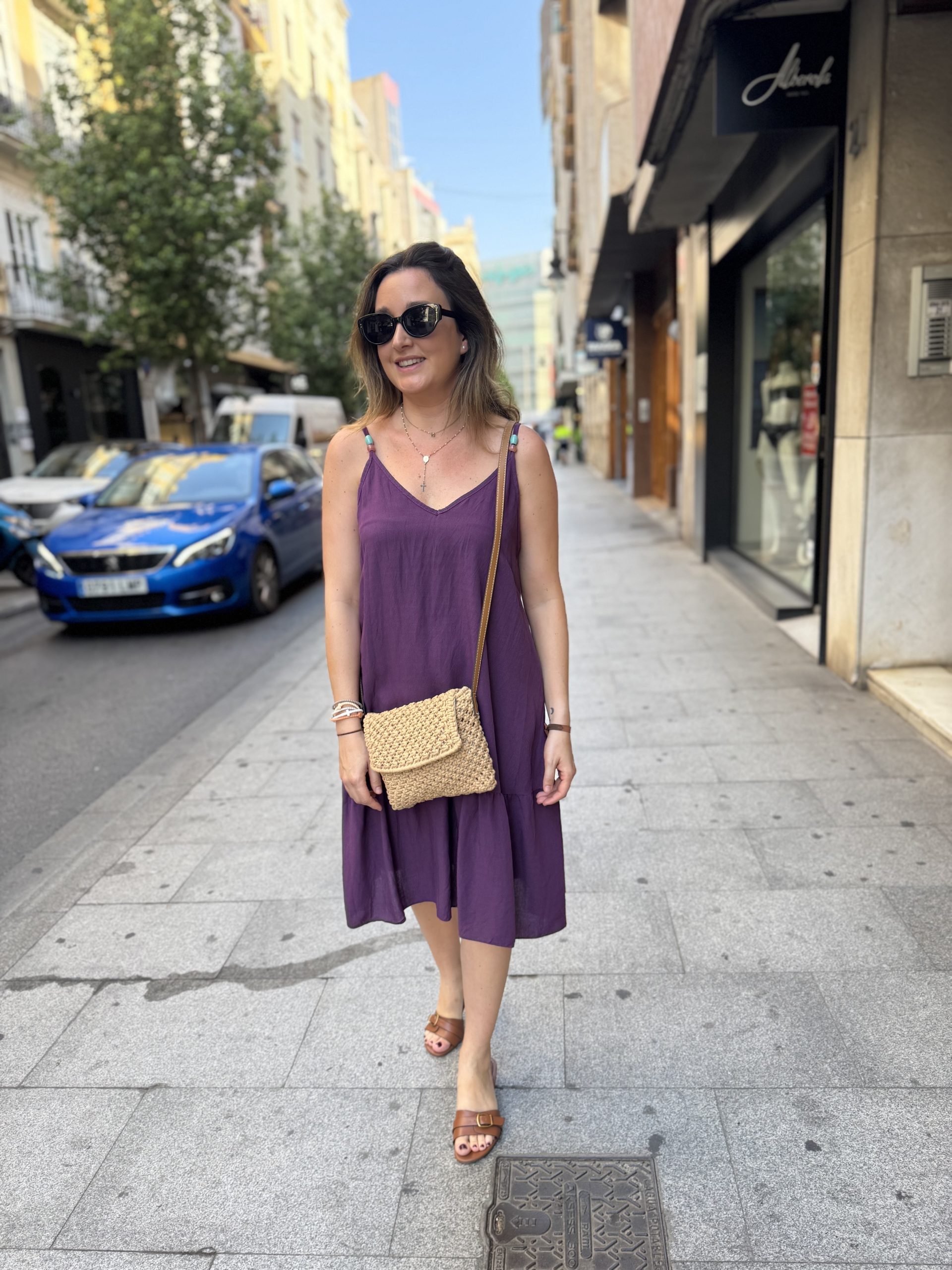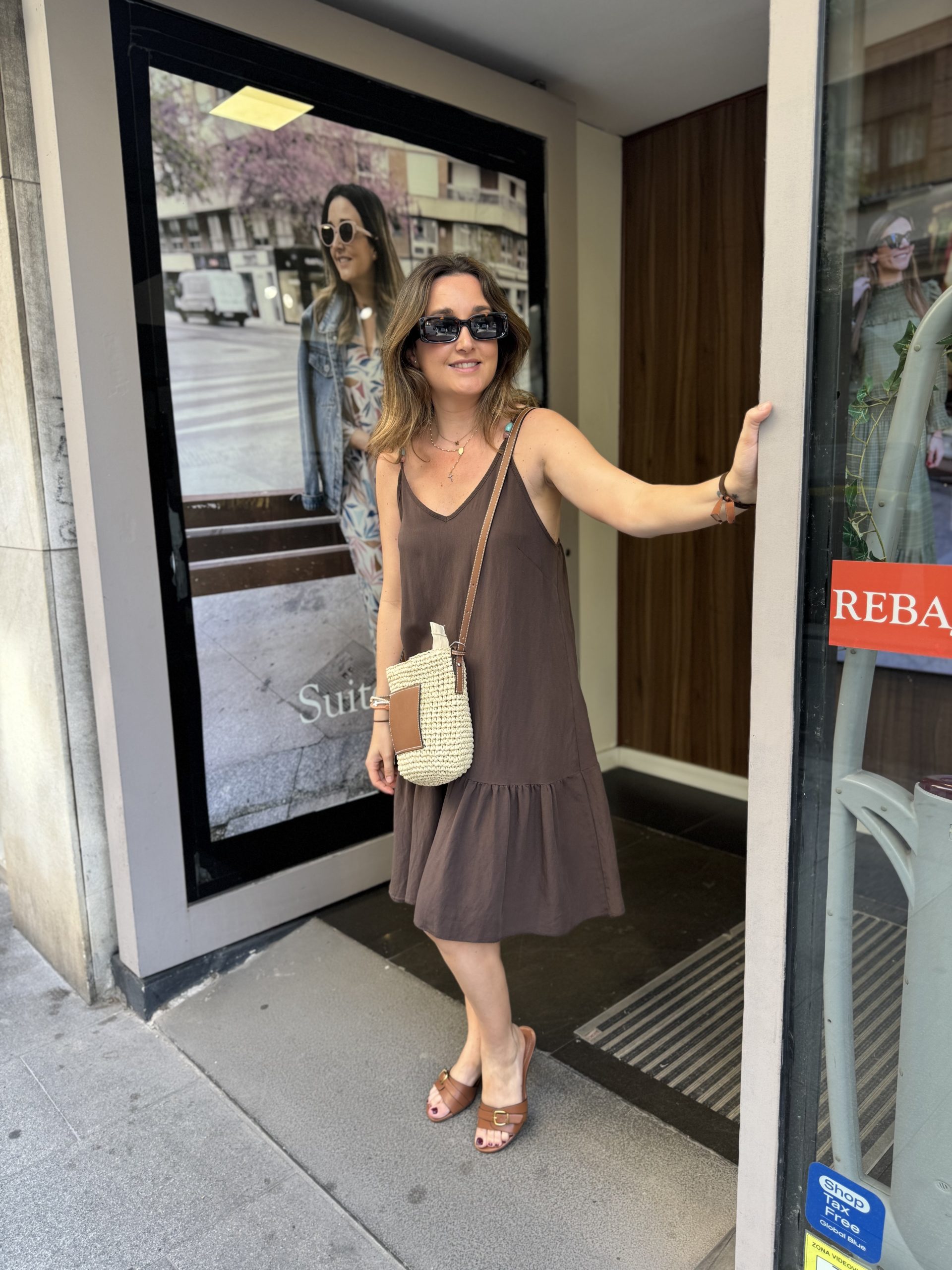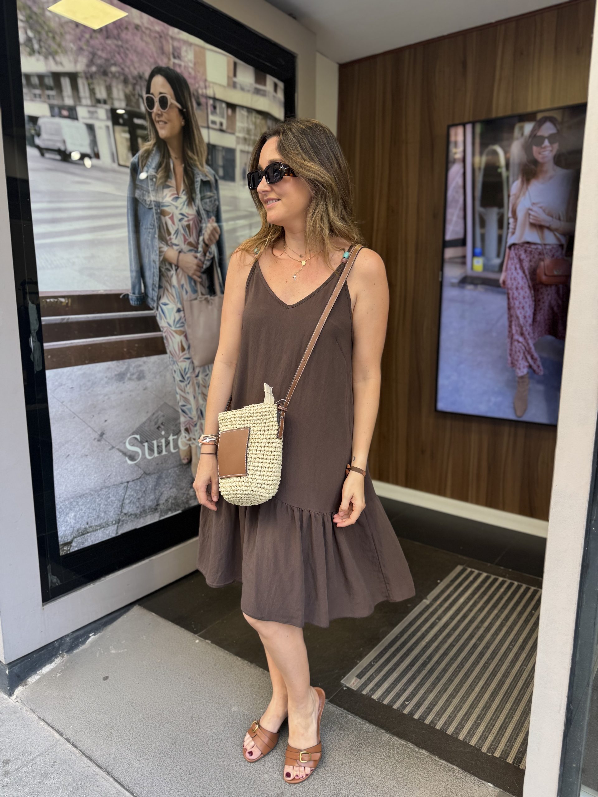VESTIDO DE TIRANTES LISO CON DETALLE DE BOLITAS. TALLA ÚNICA, HASTA UNA 42 APROX.