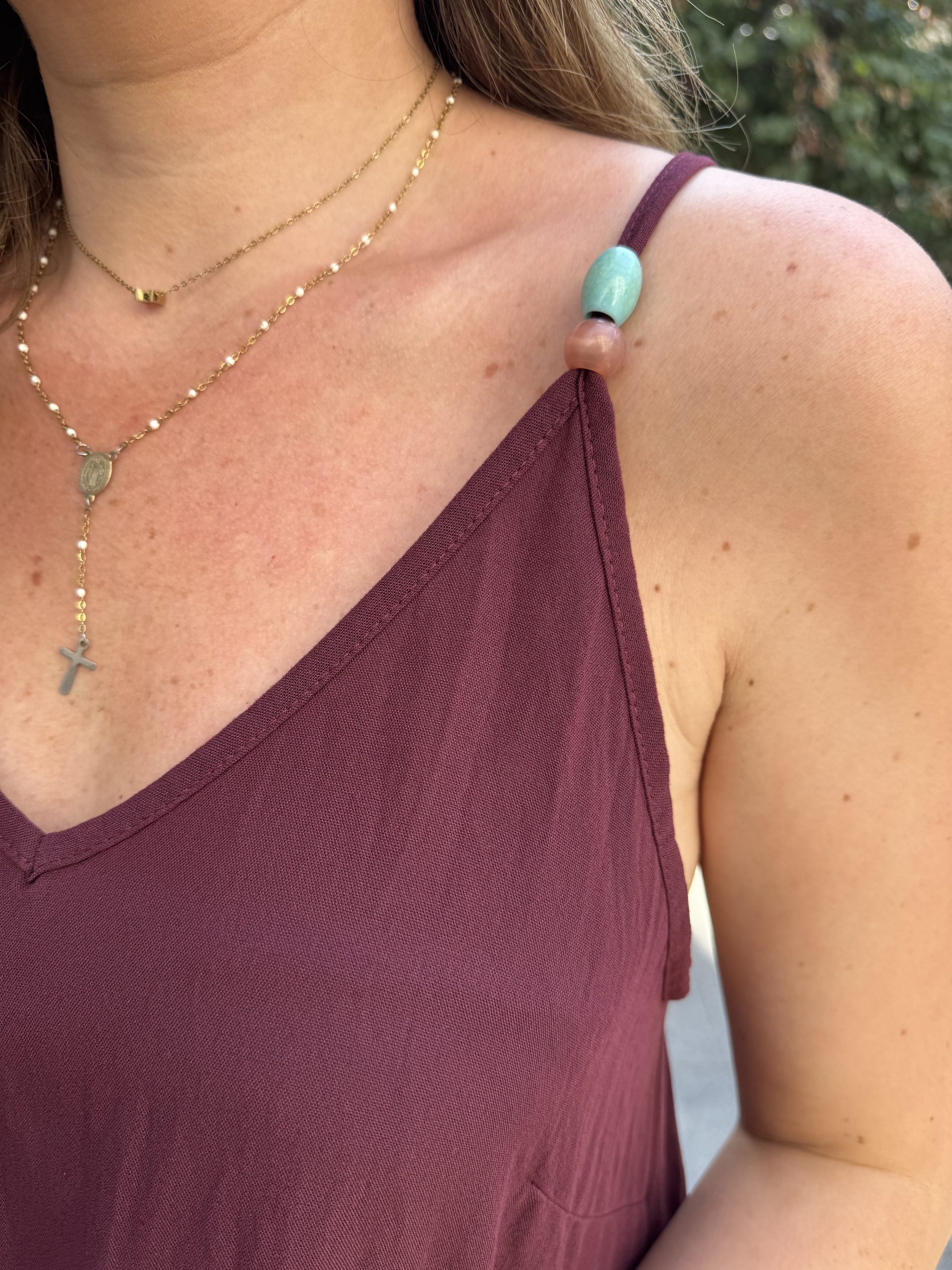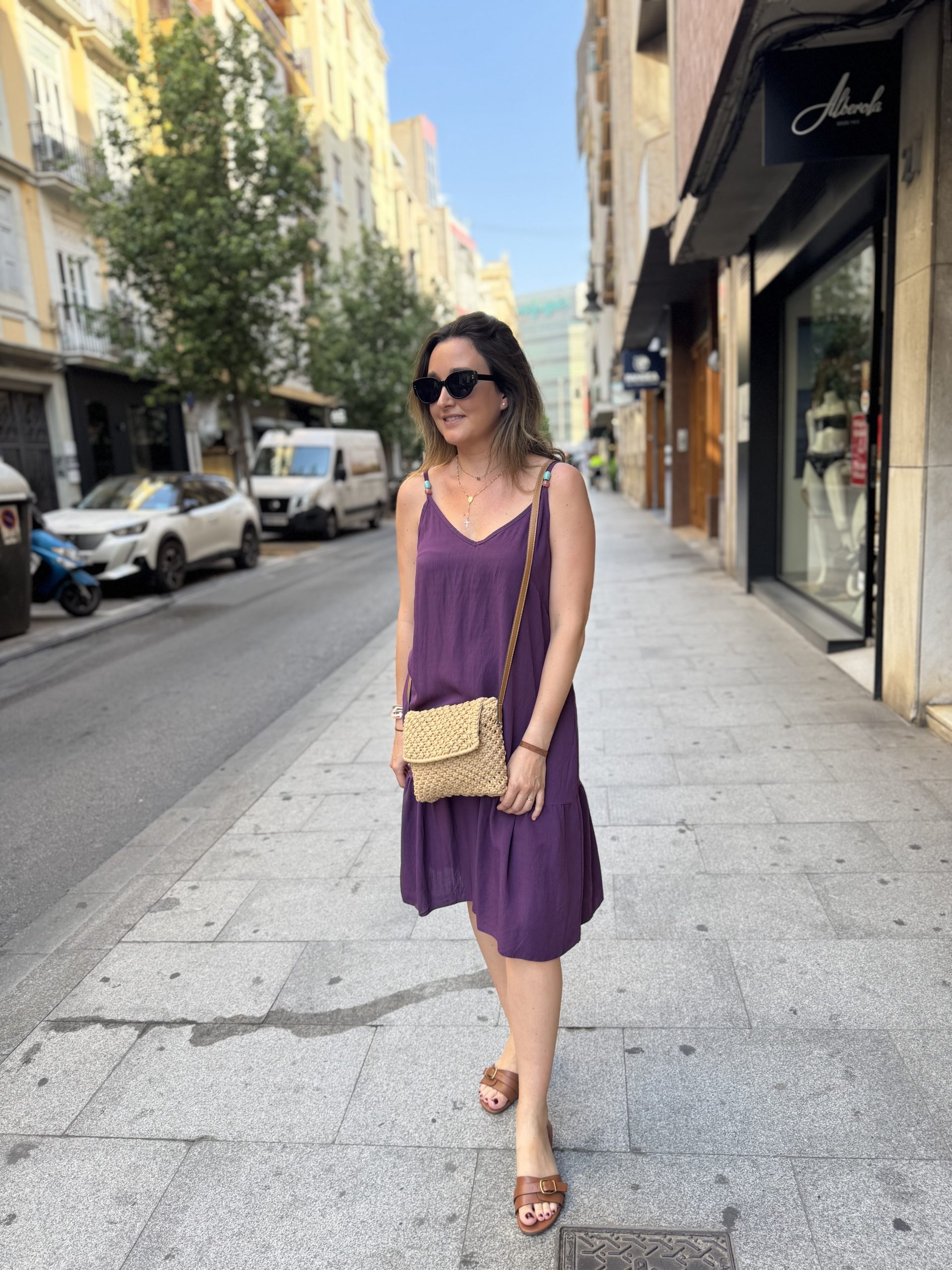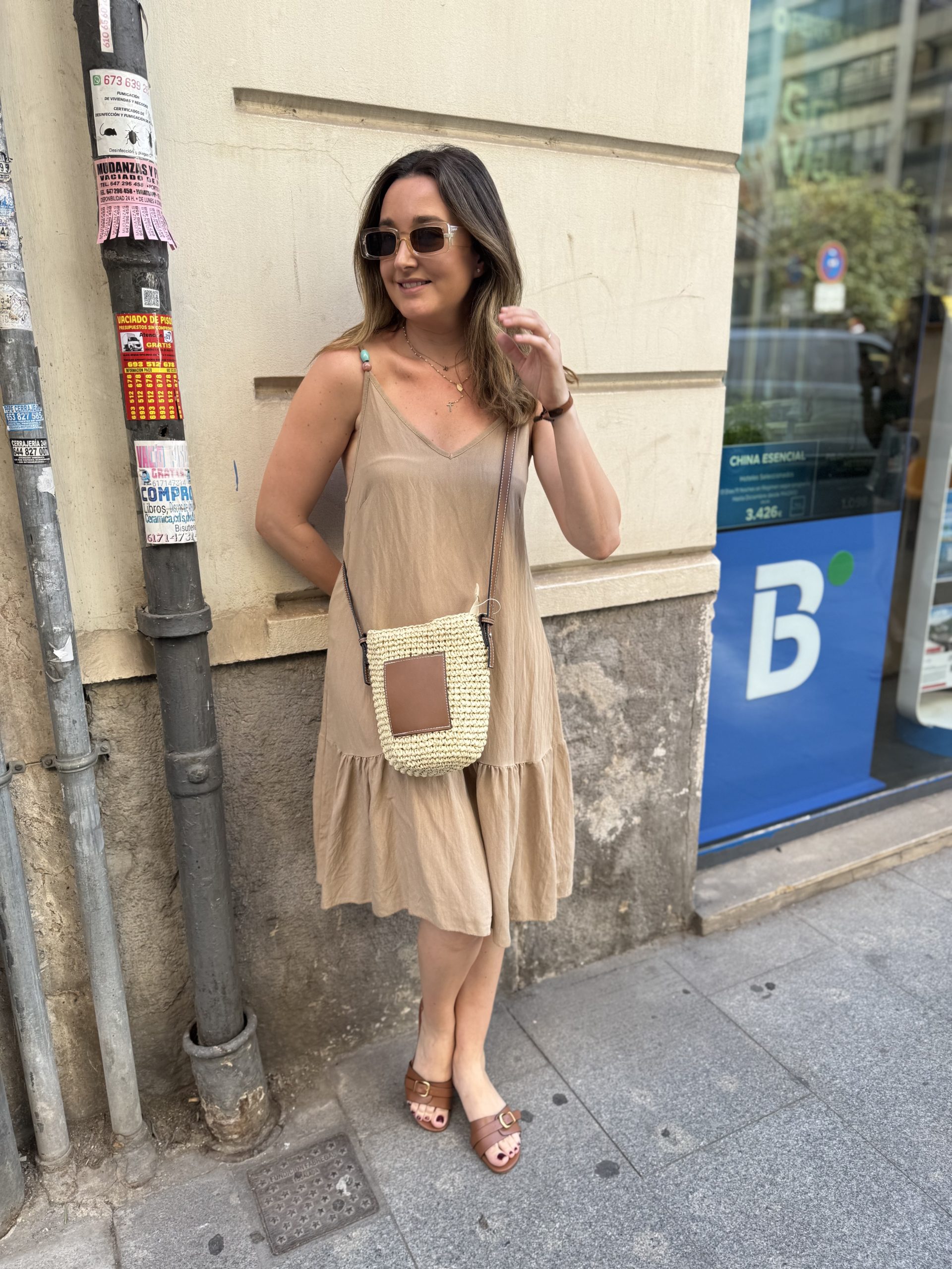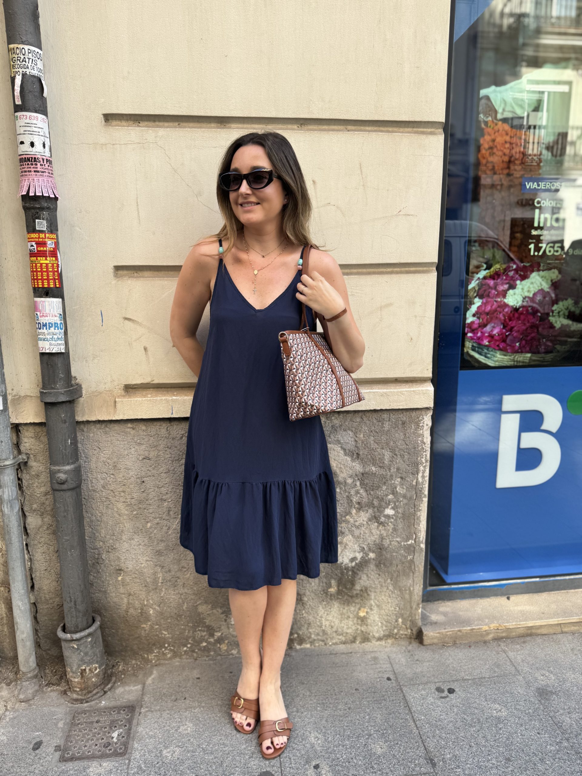 VESTIDO DE TIRANTES LISO CON DETALLE DE BOLITAS. TALLA ÚNICA, HASTA UNA 42 APROX.
