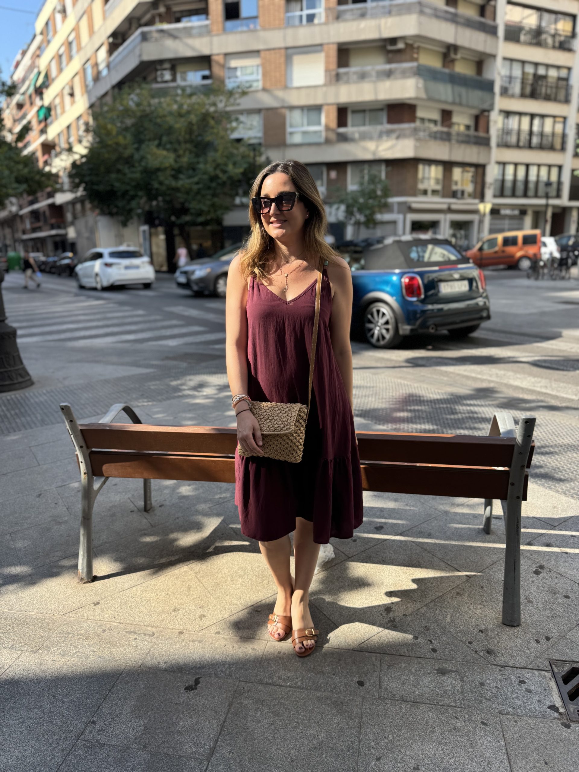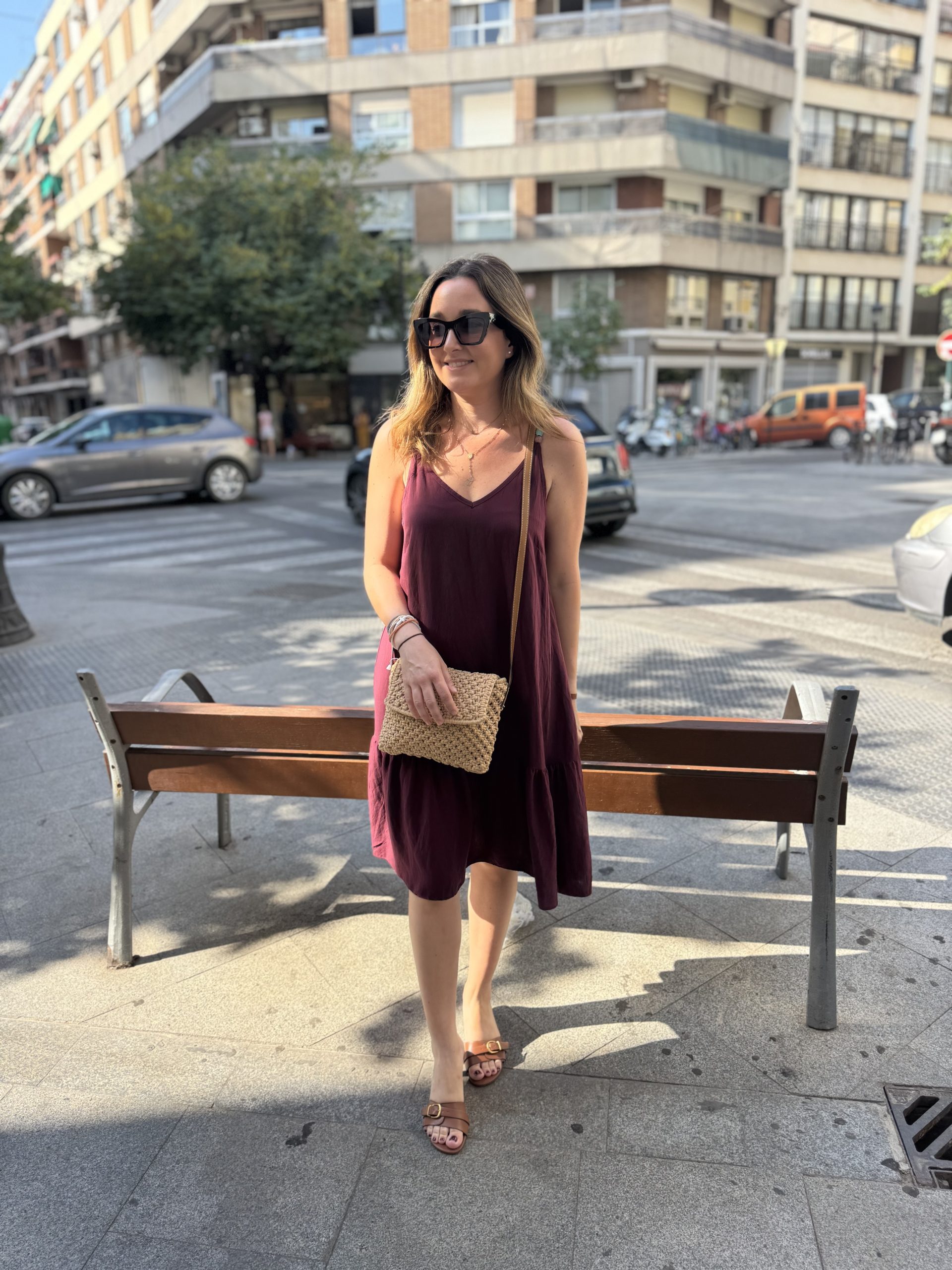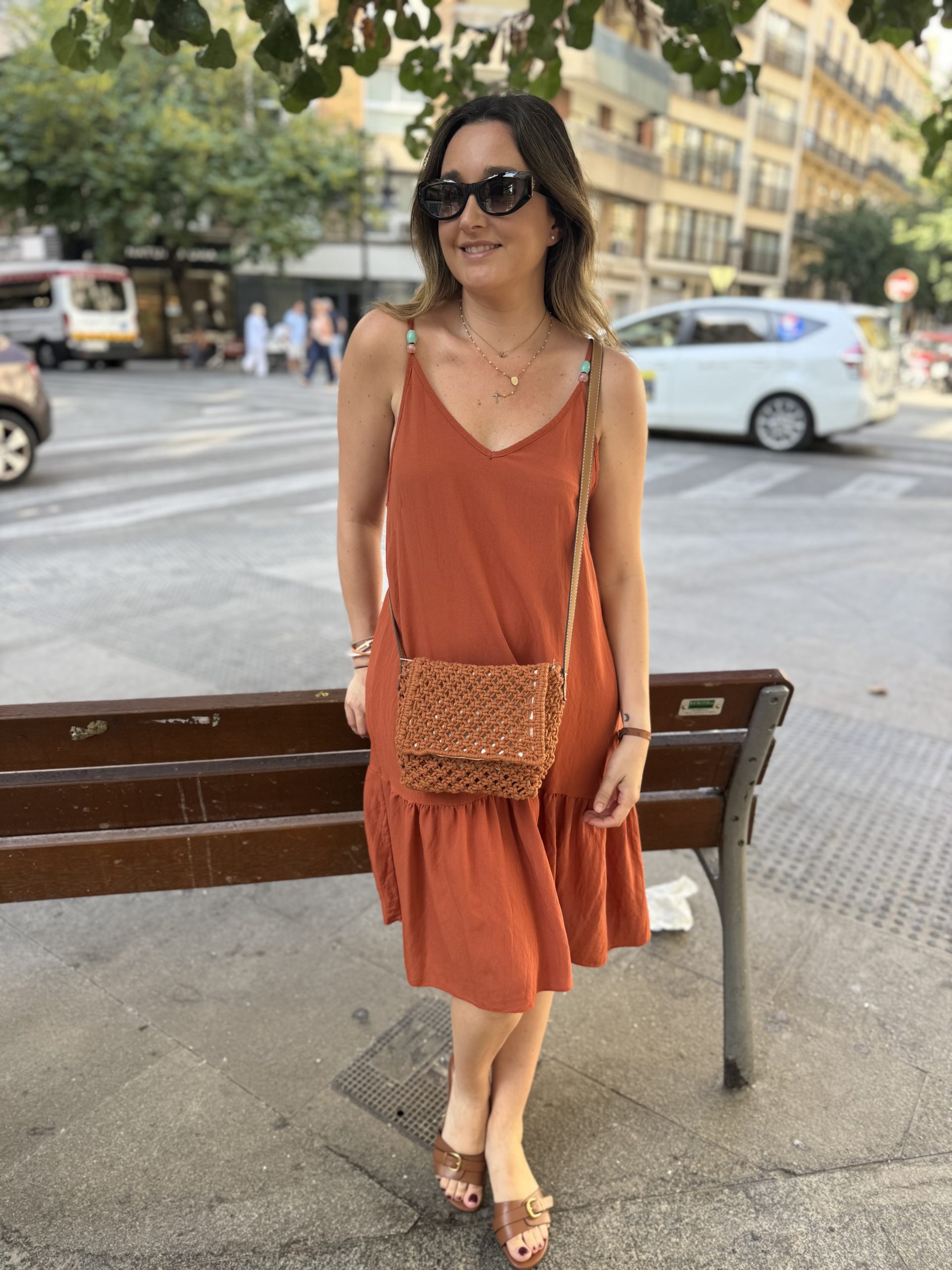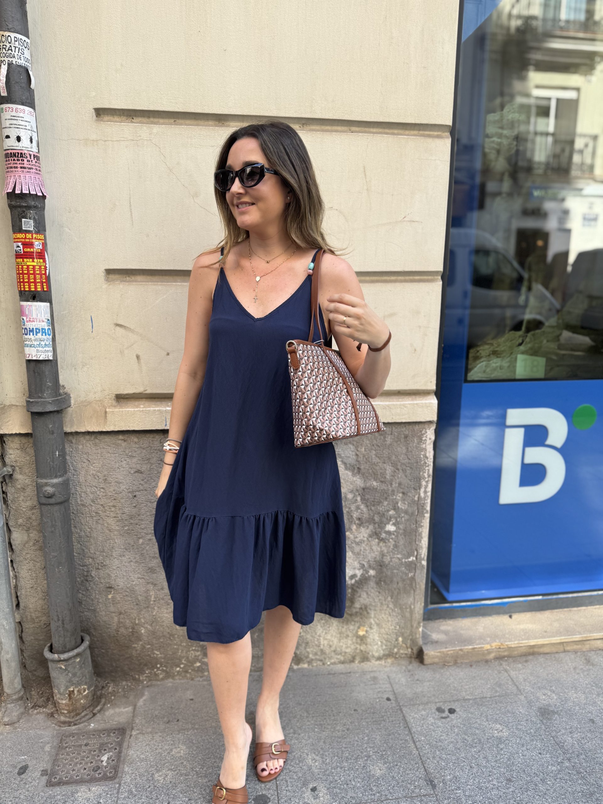 VESTIDO DE TIRANTES LISO CON DETALLE DE BOLITAS. TALLA ÚNICA, HASTA UNA 42 APROX.
